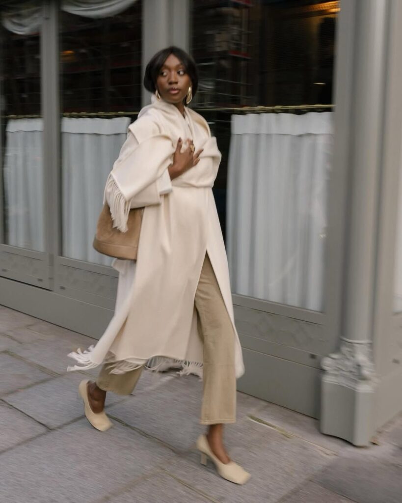 For example, pairing black trousers with a white shirt and a beige jacket creates a clean and elegant look.
