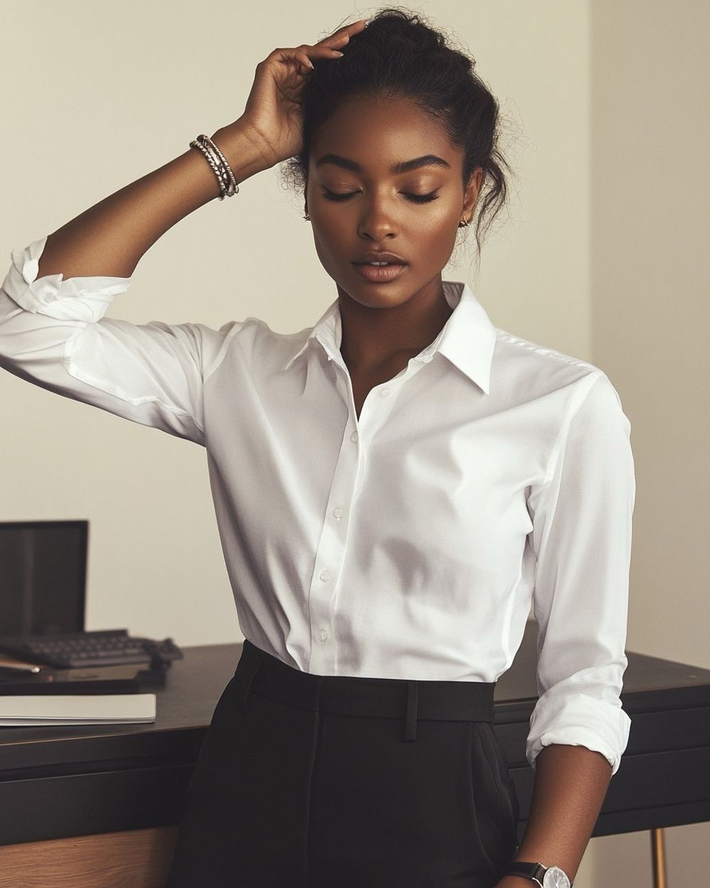 1. The Classic White Shirt and Black Trousers Outfit